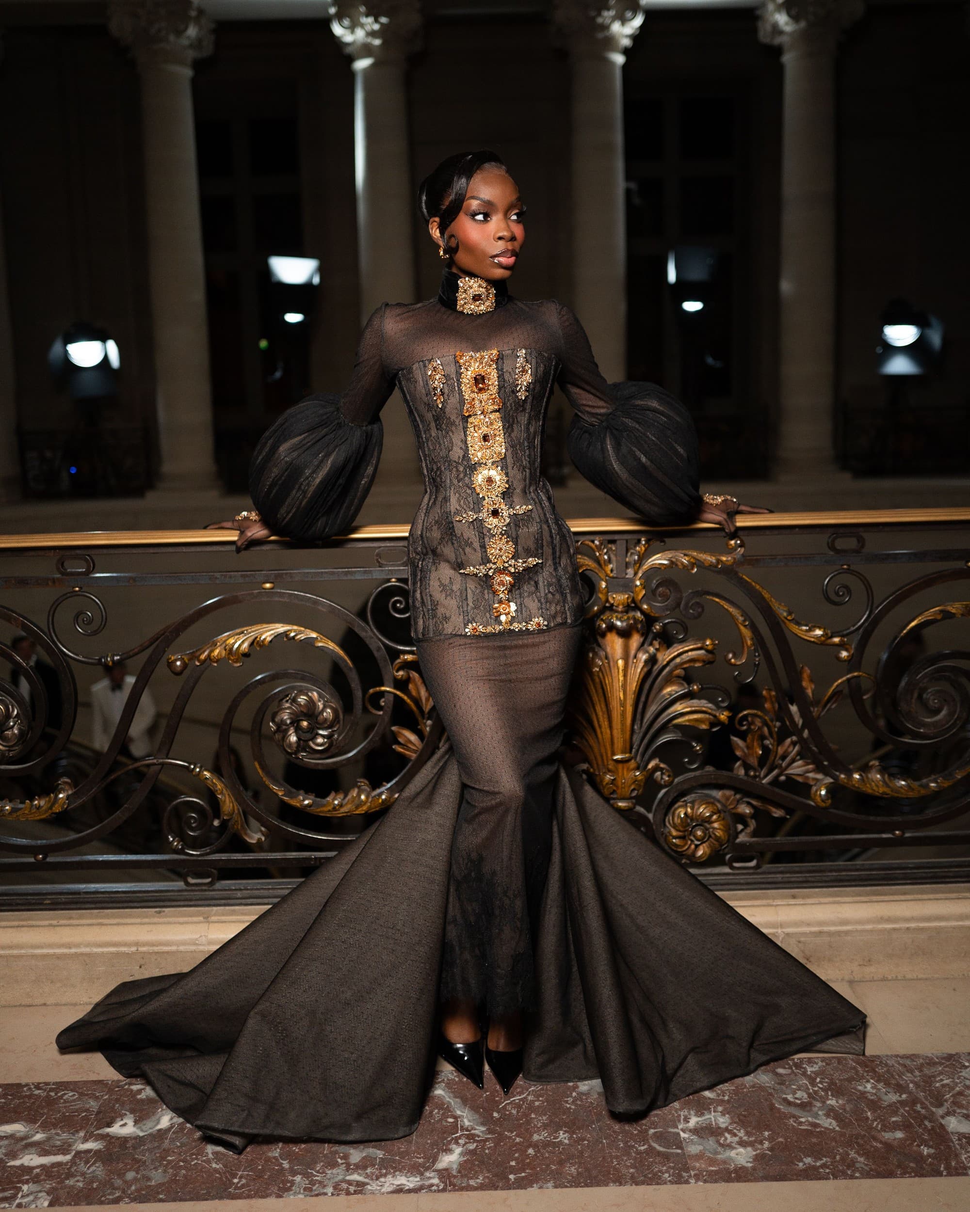 Pierrick Rocher/BFA.com/ShutterstockThe people's princess Olandria Carthen brought gothic and vintage elements to the Grand Dîner du Louvre in Paris with help from her styling team Matthew and Reginald Reisman. She wore a dress by designers Khaled & Marwan that combined corsetry, embellishments, balloon sleeves, and a fit and flare skirt.