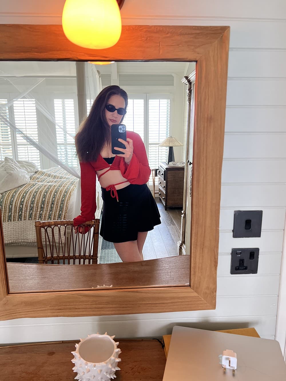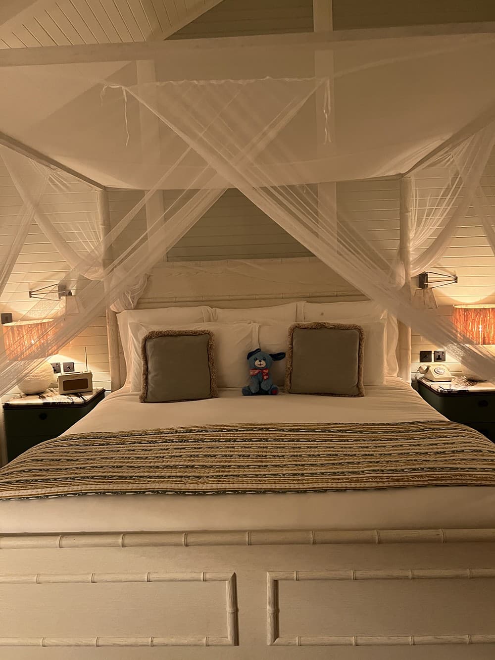 Alison Syrett ClearyAs for us plebs without vacation homes to retreat to? Luckily, there are three (still incredibly luxe) resort and rental options on the island to choose from: the Italian villa-inspired Mandarin Oriental Canouan; Canouan Estate and Villas, which has intimate residences for groups and families; and Soho Beach House Canouan, the breezy and coastal-cool hotel where I’m set to stay. I arrive after a long day of traveling misadventures, including a delayed connecting flight and a brush with the Barbadian law. (Let’s put it this way: The country has made wearing camouflage print illegal and I definitely did not know that when I chose my pants for the flight.) I’m exhausted, hungry, and sticky from a day stuck wearing my cold weather New York clothes in the tropical heat. But I’ve revived the moment I enter my suite. Decorated in wicker furniture and linen touches worthy of a Nancy Meyers movie, a gentle salt air breeze blowing through floor-to-ceiling doors, the room is a serene oasis. I pivot from my original desire to skip dinner with my group and shower, then change into a long, romantic red dress for a candlelit meal on the resort’s private beach jetty.