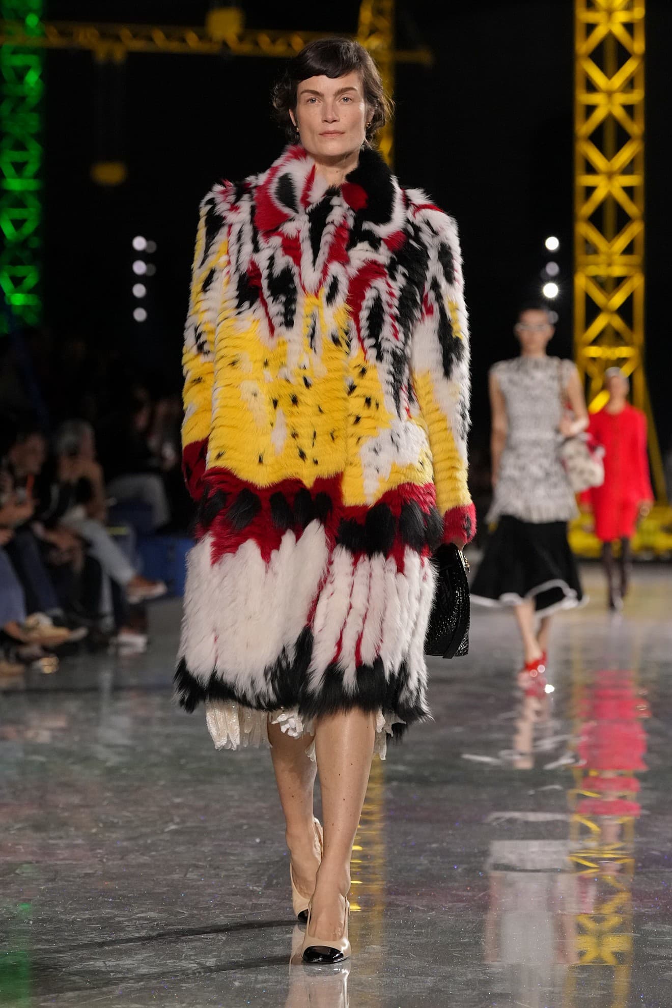 Today, we departed from the solar system and landed firmly in the world that Matthieu Blazy is building at Chanel. Instead of the planetary set that the new creative director constructed for his Spring/Summer debut last October, Paris’ Grand Palais was transformed into a darkened space illuminated by multi-colored cranes. Models emerged from a polished floor, construction sounds overlapping the tune of Cesária Evora’s Petit Pays as our first impressions of Blazy’s sophomore ready-to-wear collection began to form.