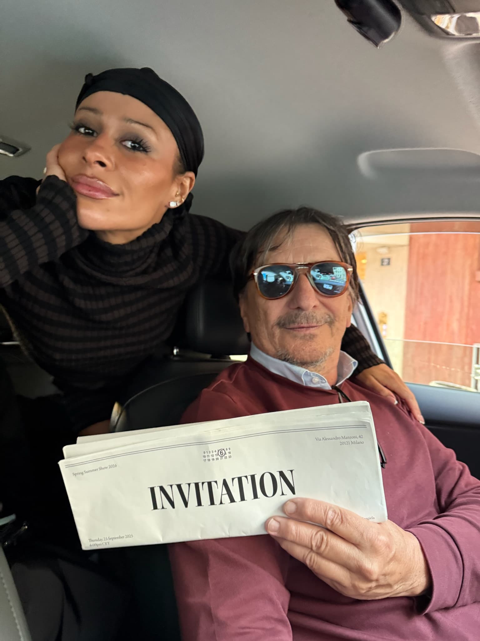 "Ran into my love Linlin after the show and we had to do a throwback moment from last season at Milan Fashion Week."