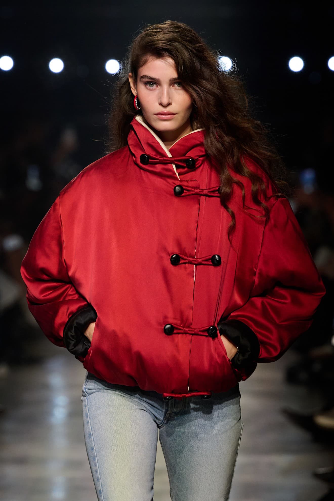 Elie Saab Fall/Winter 2026 LaunchmetricsOur closure curiosity didn't stop asymmetry. At Khaite's Fall/Winter 2026 show, jackets with military-inspired frogging closures were presented overtop more traditional zippers and buttons—doubly secure closure, if you will.